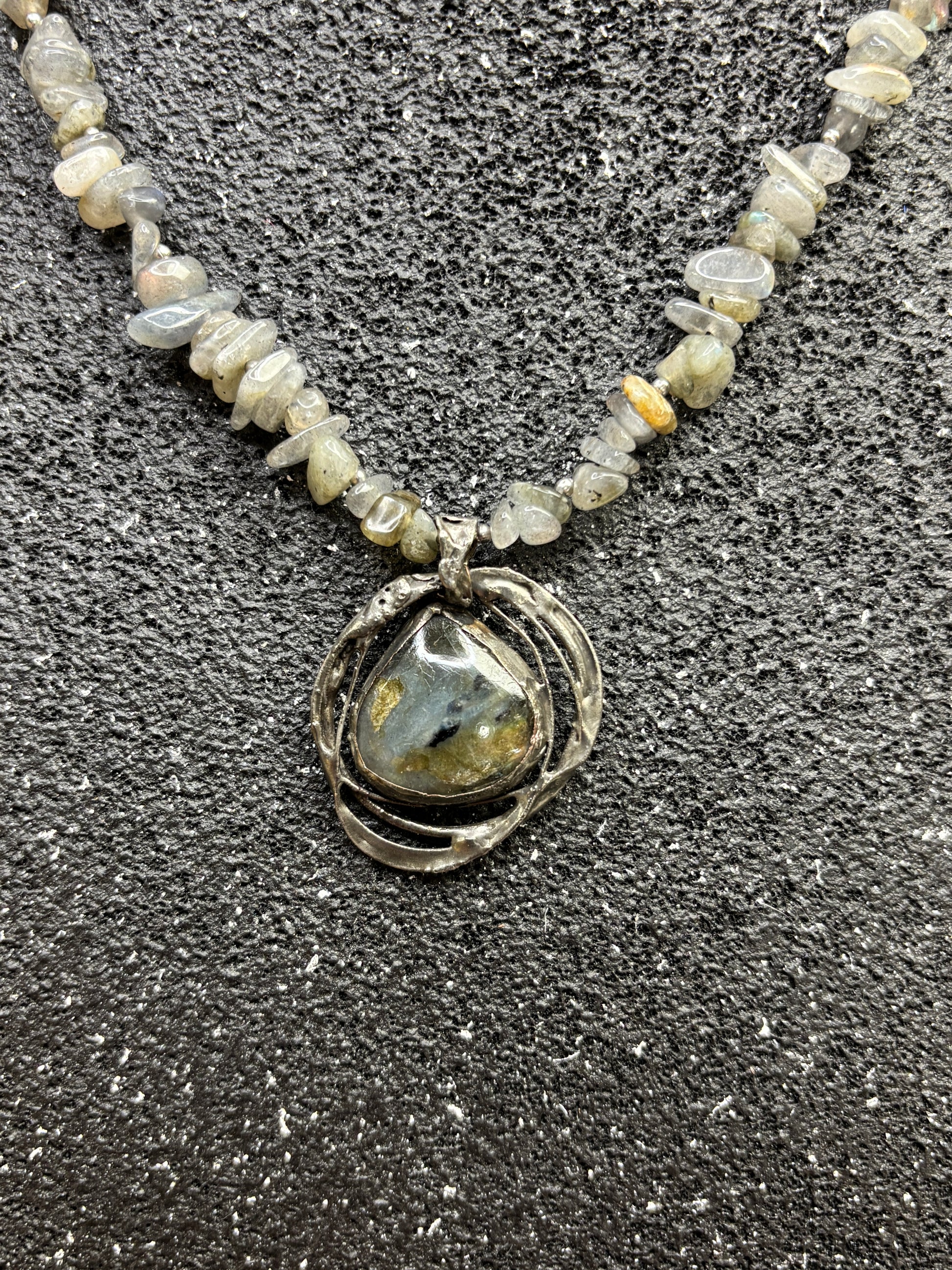 Soft Solder Labradorite Pendant and Labradorite Chip Necklace